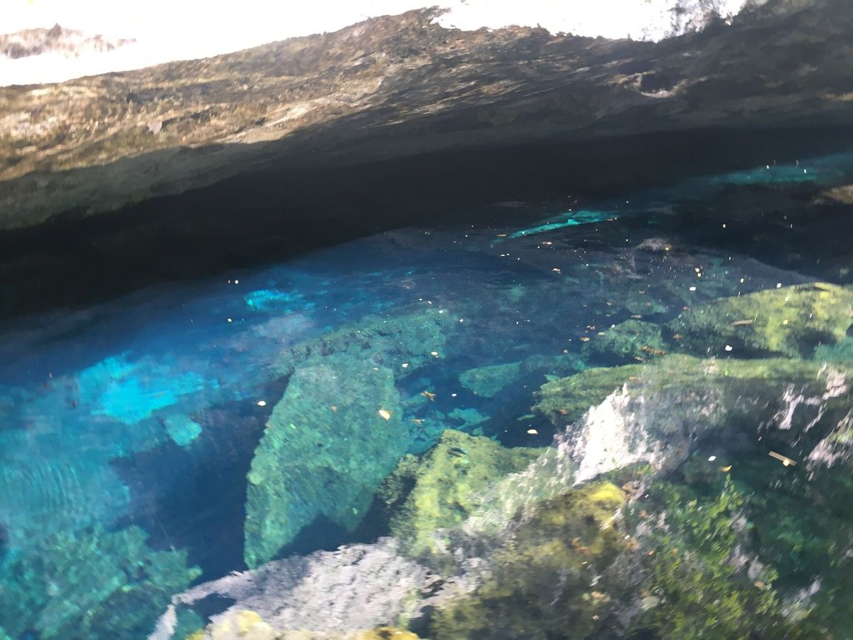 Petit cour de géologie d'un Cénote : Ils ont été créés par un phénomène de dissolution et d'effondrement des terrains calcaires situés au-dessus d'un réseau souterrain de grottes et rivières. Au Yucatán, un anneau de cénotes se trouve disposé autour du cratère de Chicxulub : météorite de 10 km de diamètre qui serait à l'origine des effondrements et qui aurait également causé l'extinction des dinosaures il y a environ 65 millions d'années. Les cénotes dans la zone du Yucatán, sont pour la plupart reliés entre eux par un système de grottes aquatiques, qui aurait été créé lors de l'impact de la météorite. Mais avant qu'ils ne se remplissent d'eau complètement, des milliers d'années se sont écoulés, et donc on y retrouve comme dans toute grotte des stalagmites, des stalactites, des strates mais aussi des fossiles de coquillages car la péninsule était il y a des millions d'années sont la surface de la mer.